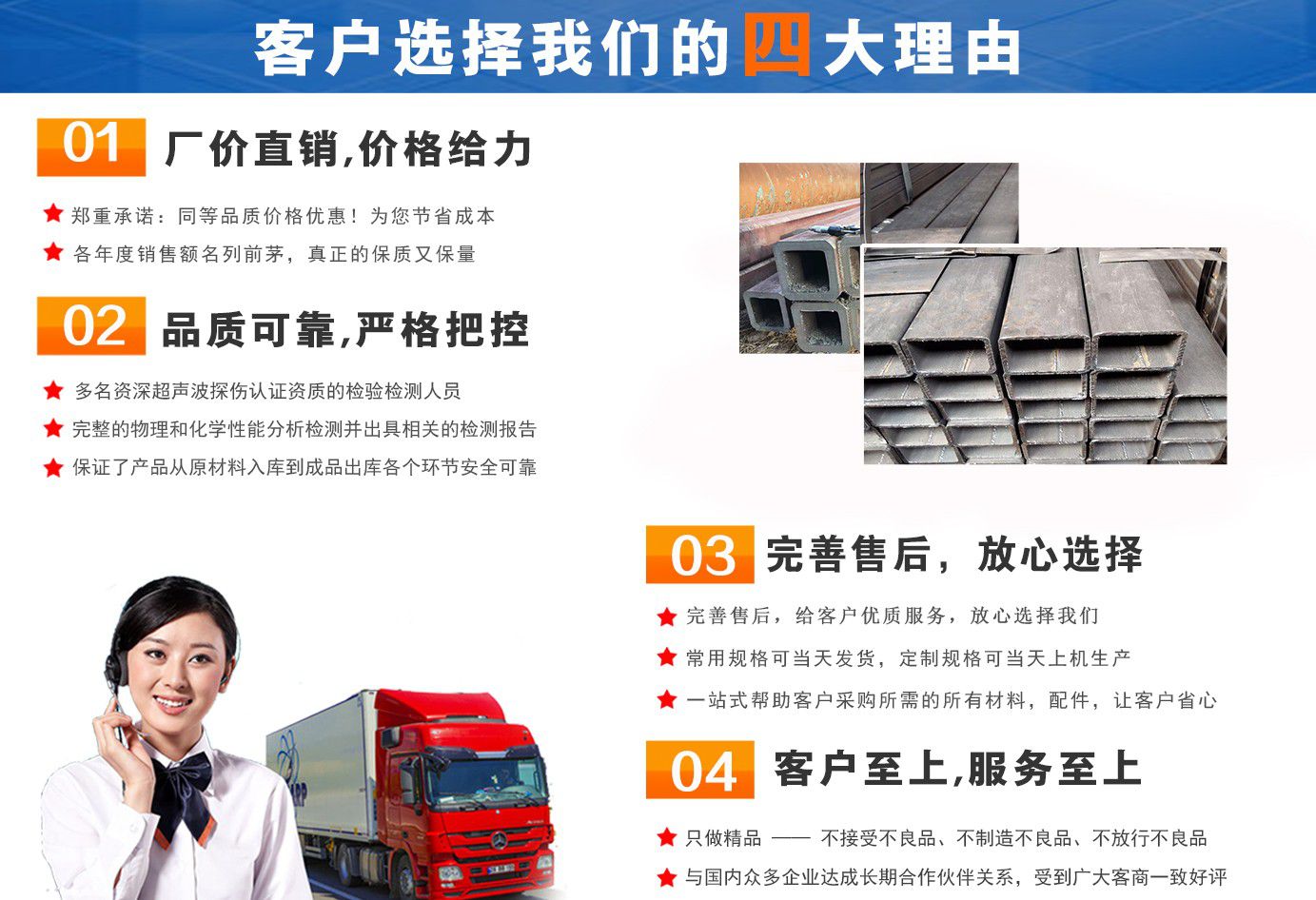 無錫盛灝特鋼有限公司長期銷售Q355B方矩管,鍍鋅方矩管,大口徑方矩管,厚壁方矩管,無縫方矩管等各種方管產品!產品廣泛應用于鋼結構建筑(鋼管混凝土、管樁、管桁架,橋梁、海上作業平臺、港口碼頭建設、電視通訊鐵塔、電力鐵塔等鋼結構管)。壓力管道(石油、天然氣、煤漿等輸送)、機械制輥等領域?! 」咀詣撧k以來,一直堅持“誠信合作,共同發展”的經營理念?! ∫恢币詠砦覀儽局耙哉\相待,以信為本,互利互惠,共同發展”的長期方針,充分發揮現貨資源優勢為您提供“可靠的產品、過硬的質量、完善的服務”,歡迎廣大新老客戶前來洽談業務。  公司以“至誠至信,雙利雙贏”為根本宗旨,堅持科技興企的發展策略,恪守商規,創新進去,贏得聲譽,贏得了市場,得到了社會各階層的認可。公司以雄厚的實力、可靠的質量、儲存鋼管門類齊全、庫存量大之優勢,本著守法、守信、創新的理念,打造精品,發展鋼管多元化品種,滿足客戶各種需求,以低廉的價格、熱情的服務面向國內外客戶,歡迎鋼管界同仁加盟!我們為客戶提供周到的服務 !  公司為客戶提供以下服務  服務三保: 保證質量、保證時間、保證數量。  服務宗旨: 雄厚的實力、優質的產品、低廉的價格、周到的服務?! ∨慵鏍I,一支起定。...